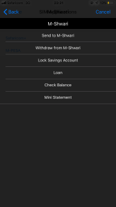 Its easy to get loans from Mshwari. The moment you activate Mshwari you get a new menu that looks like this